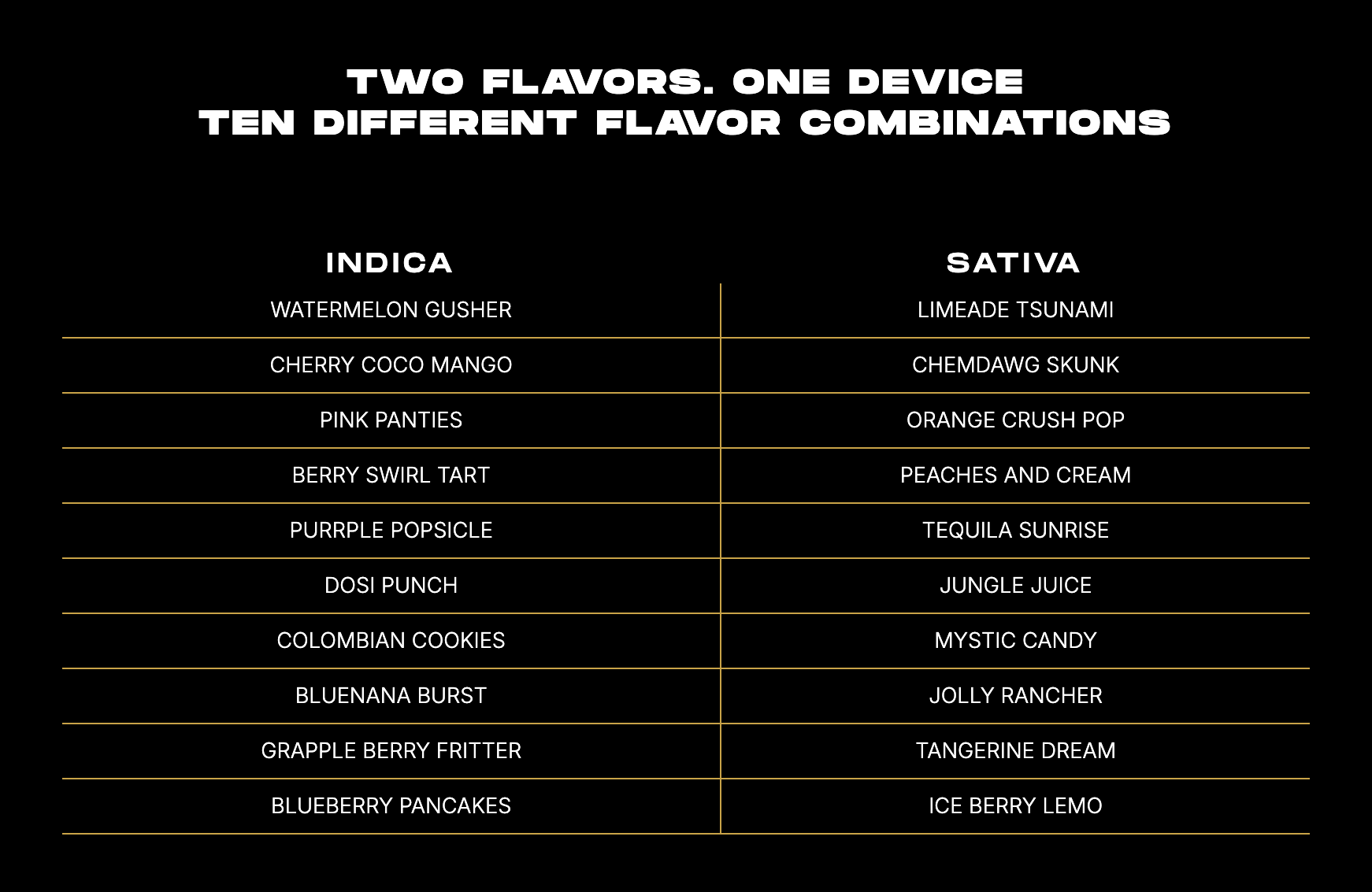 Switch effortlessly between two full flavors in one device, each crafted with strain-specific terpene blends and high-potency concentrate.